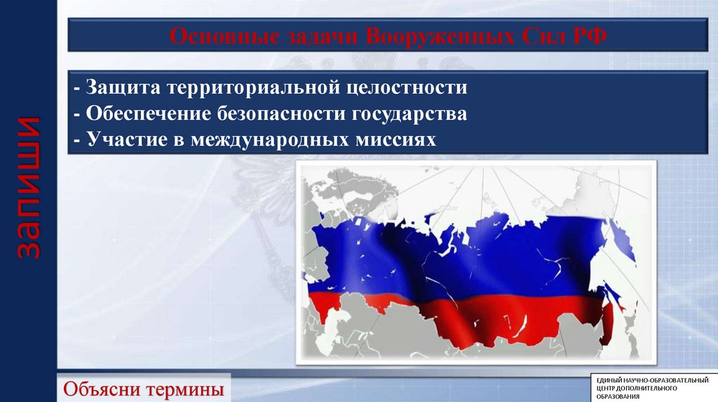 Российской Федерации, но наряду с ними участвуют в обороне государства.