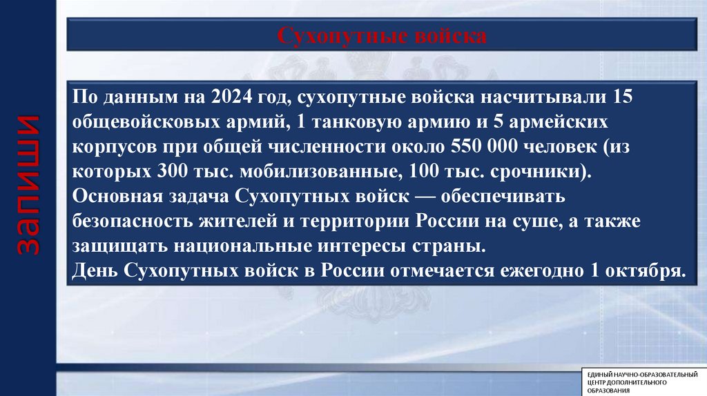 Сухопутные войска Российской Федерации — вид вооружённых сил,
