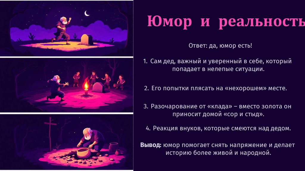 2. Дед находит клад, но это оказываются черепки и мусор.