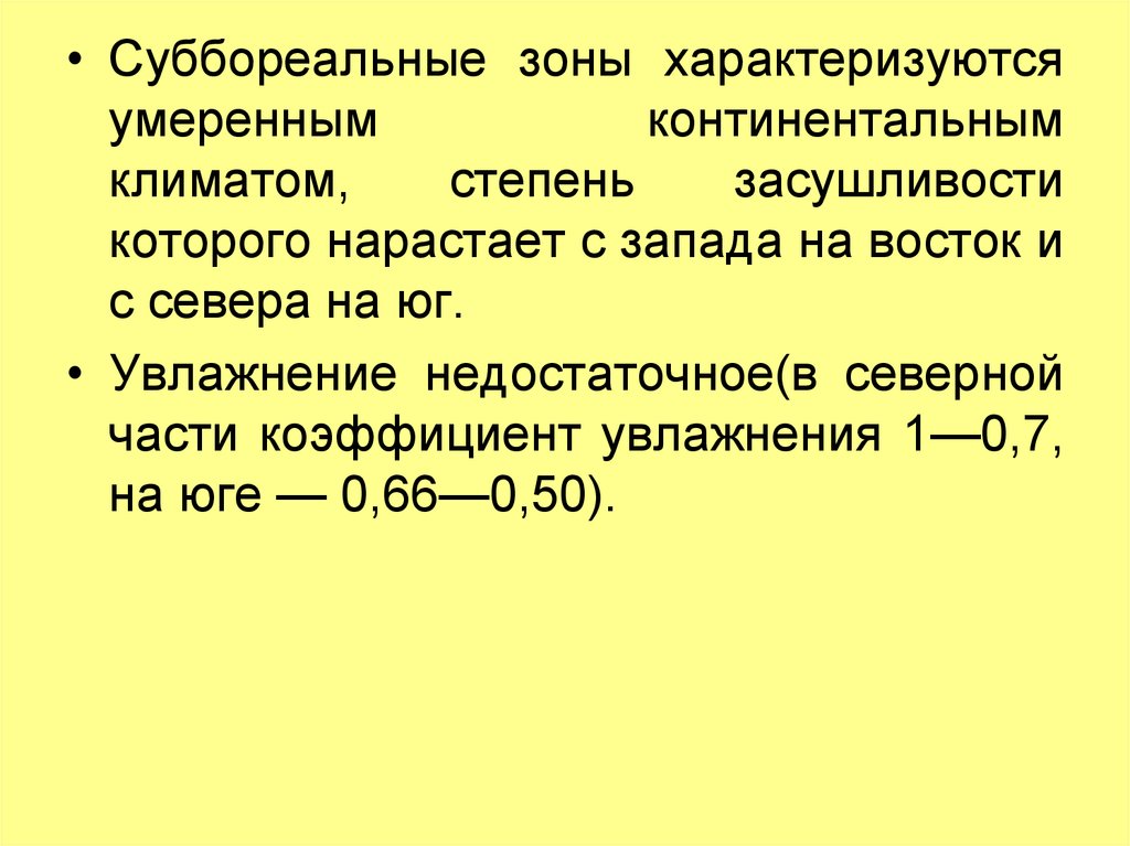 • Суббореальные зоны характеризуютсяумеренным