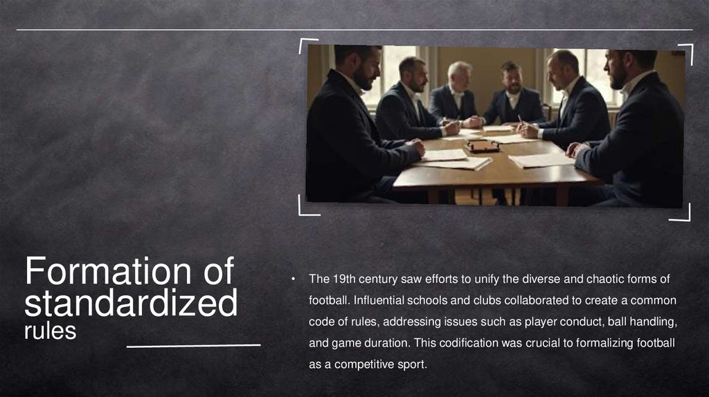 and game duration. This codification was crucial to formalizing football
