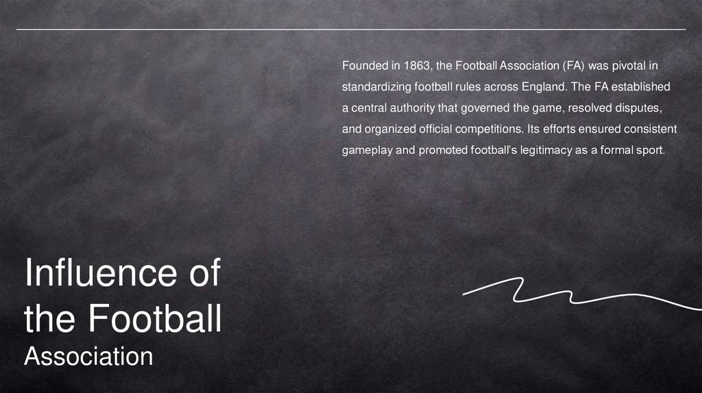 Founded in 1863, the Football Association (FA) was pivotal instandardizing football rules across England. The FA established