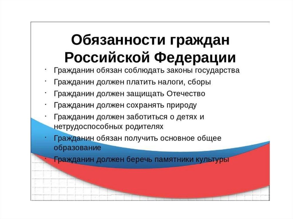 • Соблюдение Конституции и законов РФ, прав исвобод других людей