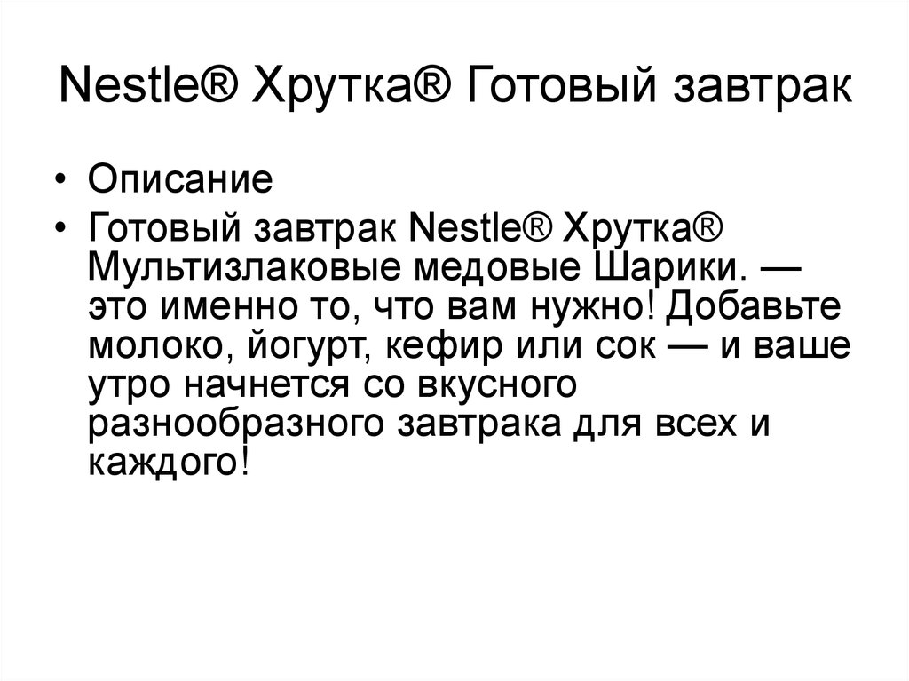 Утренний завтракNestle® Хрутка® Готовый завтрак