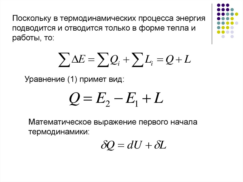 Поскольку в термодинамических процесса энергияподводится и отводится только в форме тепла и