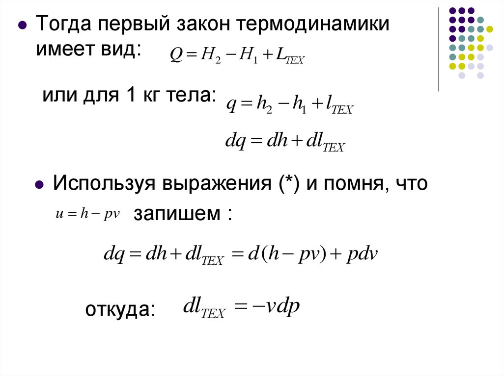 dq dh dlТЕХ d (h pv) pdv