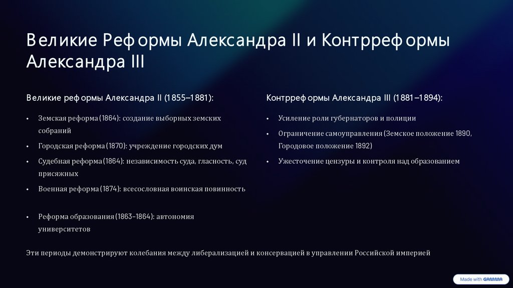 В ел икие Реф ормы Алекс андра II и Контрреф ормыАлекс андра III