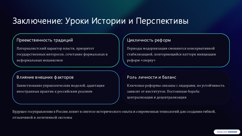 Закл ючение: Уроки Истории и ПерспективыПреемственность традиций