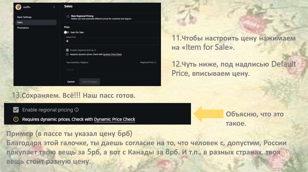 11.Чтобы настроить цену нажимаемна «Item for Sale».