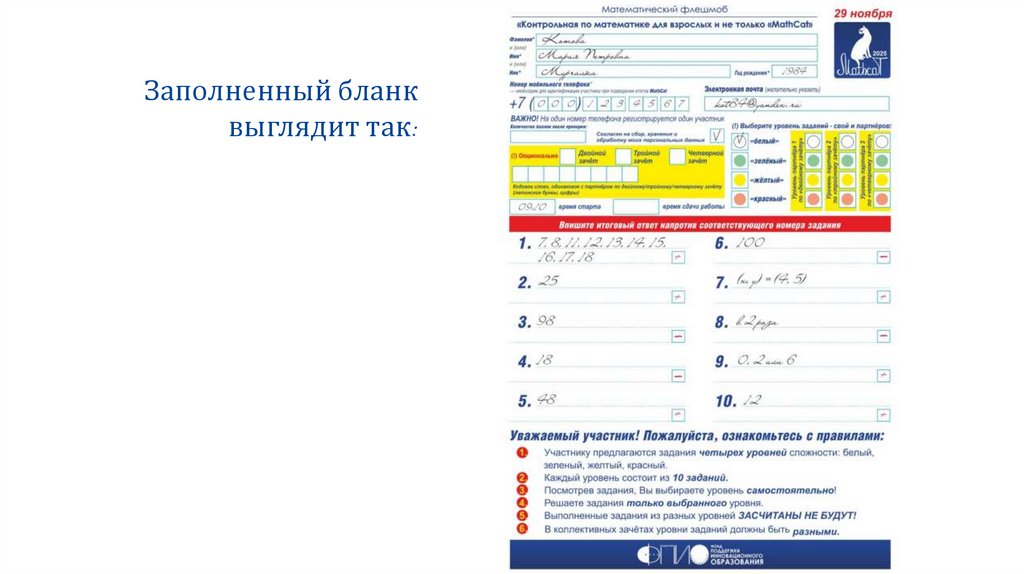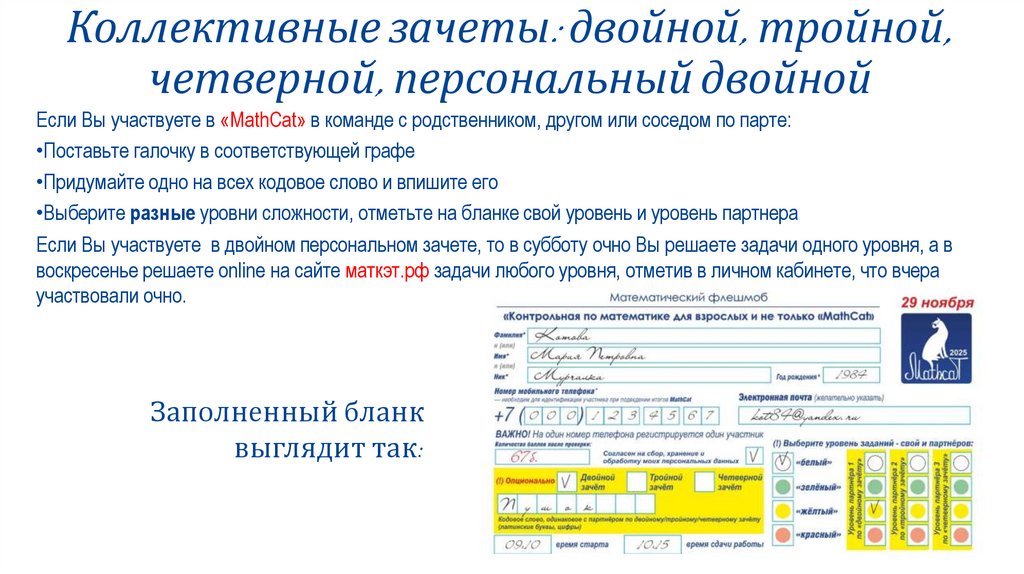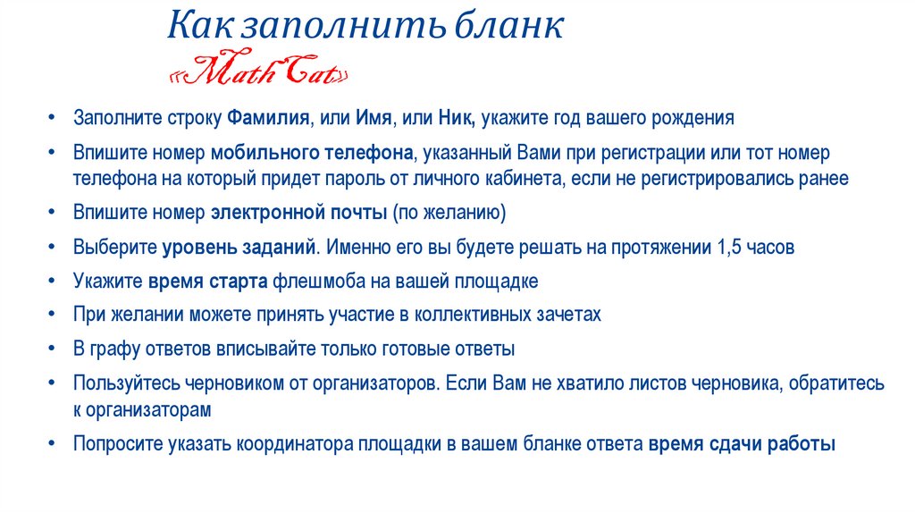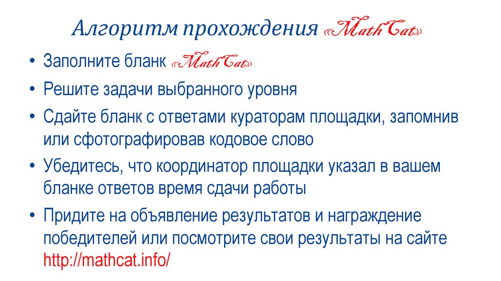 Алгоритм прохождения «MathCat»• Заполните бланк «MathCat»
