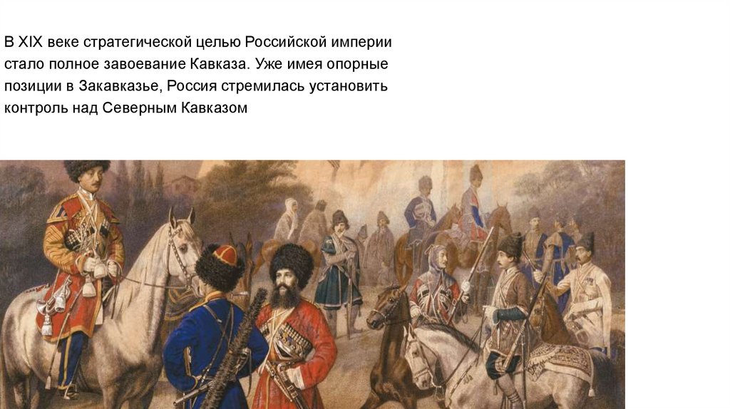 В XIX веке стратегической целью Российской империистало полное завоевание Кавказа. Уже имея опорные