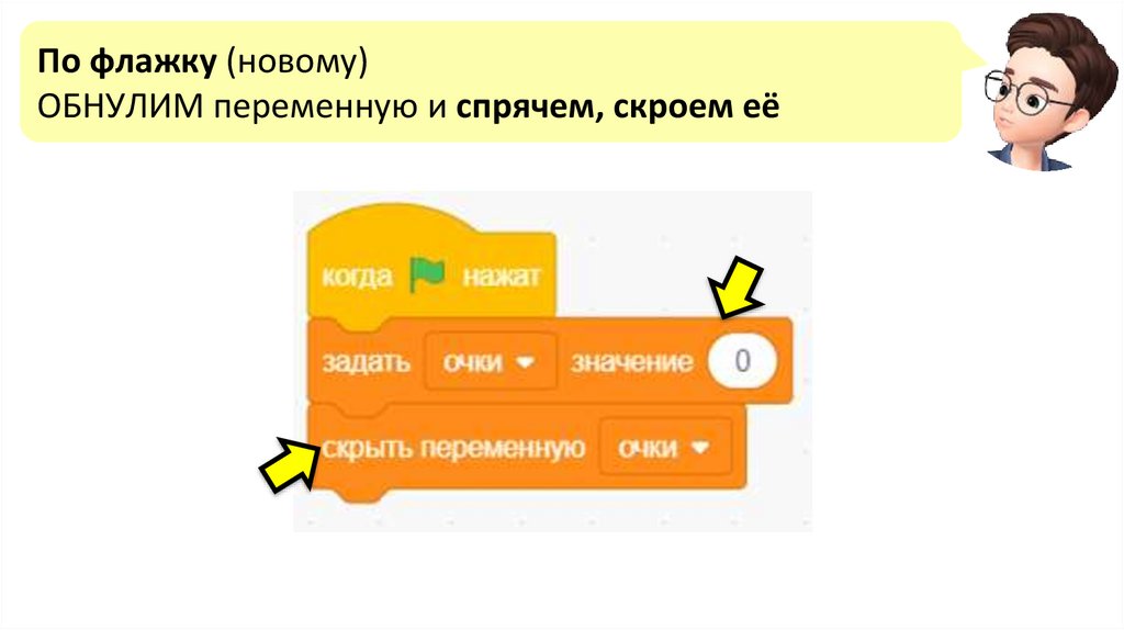 По флажку (новому)ОБНУЛИМ переменную и спрячем, скроем её