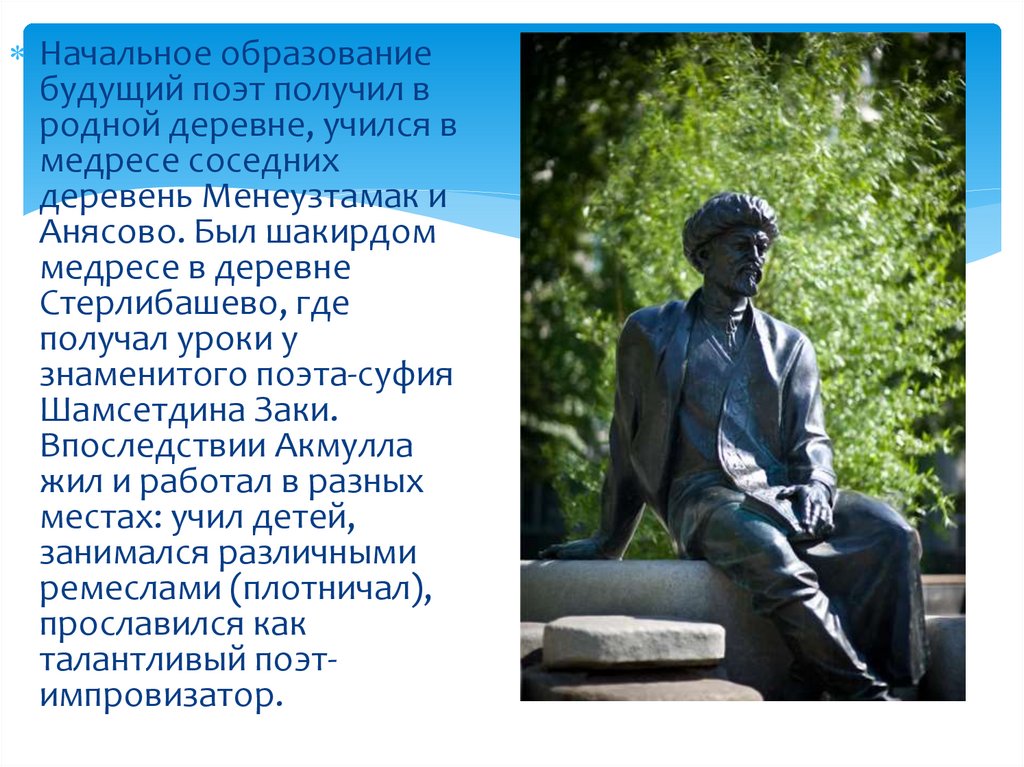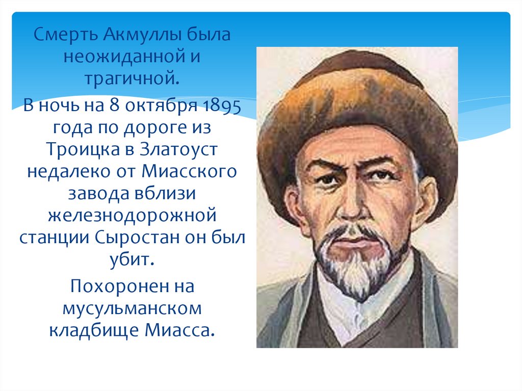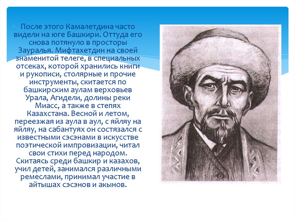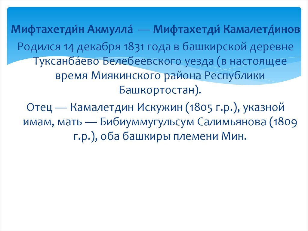 Мифтахетди́н Акмулла́ — Мифтахетди́ Камалетд́иновРодился 14 декабря 1831 года в башкирской деревне