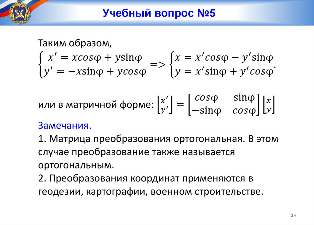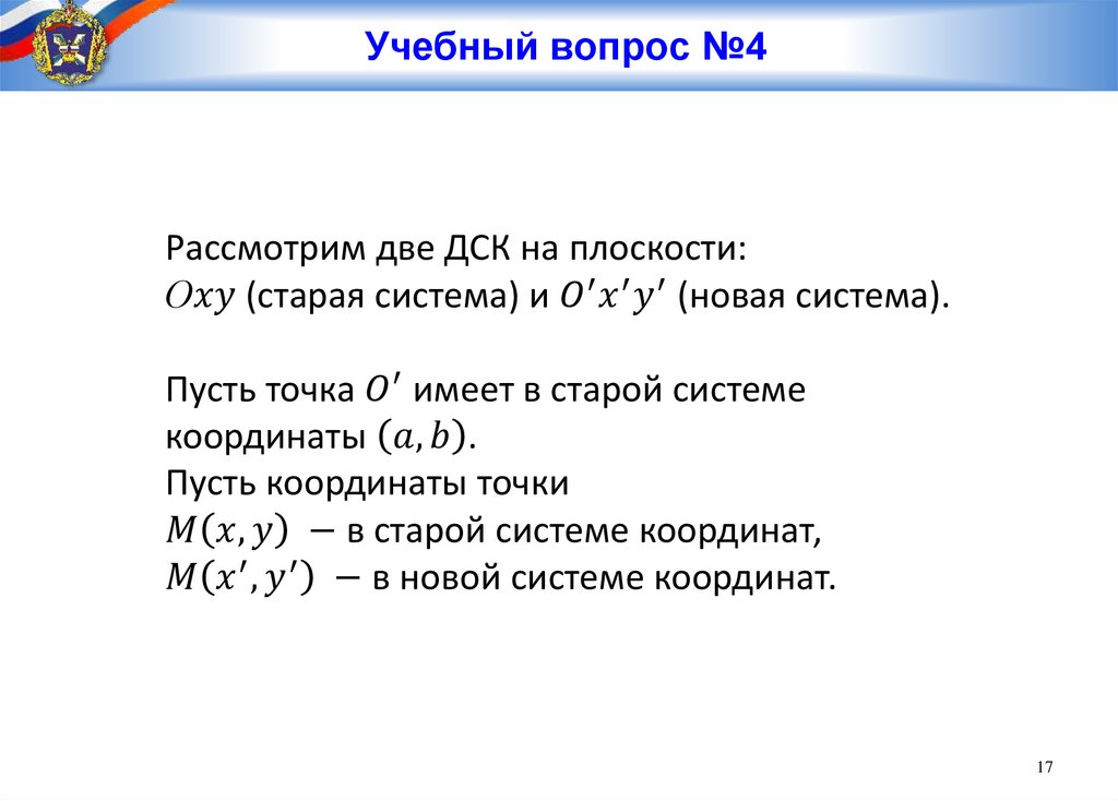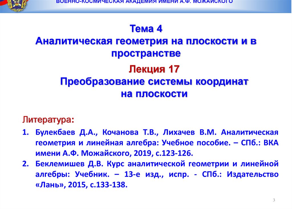 ВОЕННО-КОСМИЧЕСКАЯ АКАДЕМИЯ ИМЕНИ А.Ф. МОЖАЙСКОГОЦель лекции – изучить преобразование системы координат на