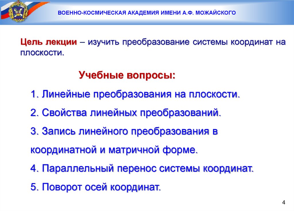 ВОЕННО-КОСМИЧЕСКАЯ АКАДЕМИЯ ИМЕНИ А.Ф. МОЖАЙСКОГОТема 4