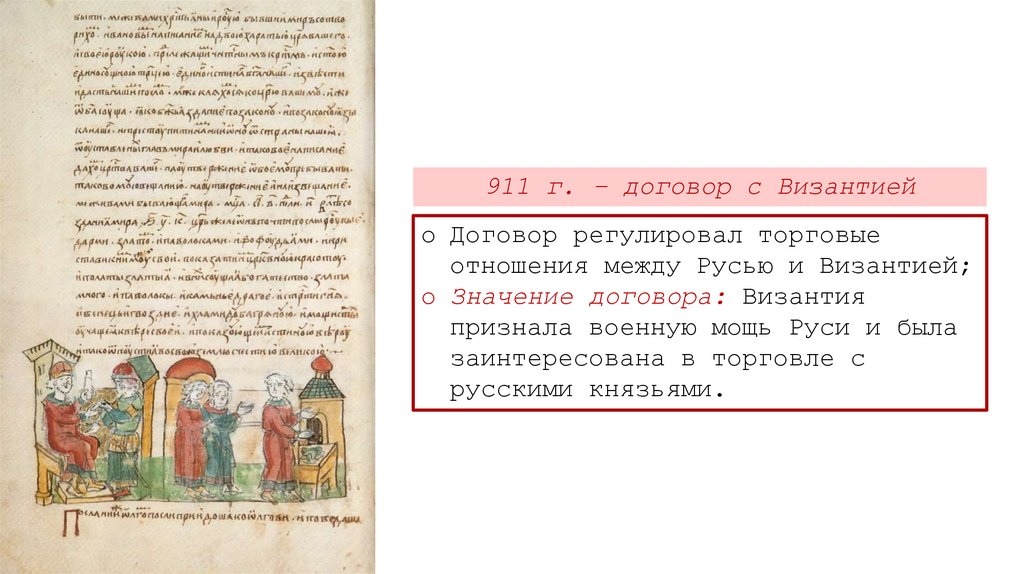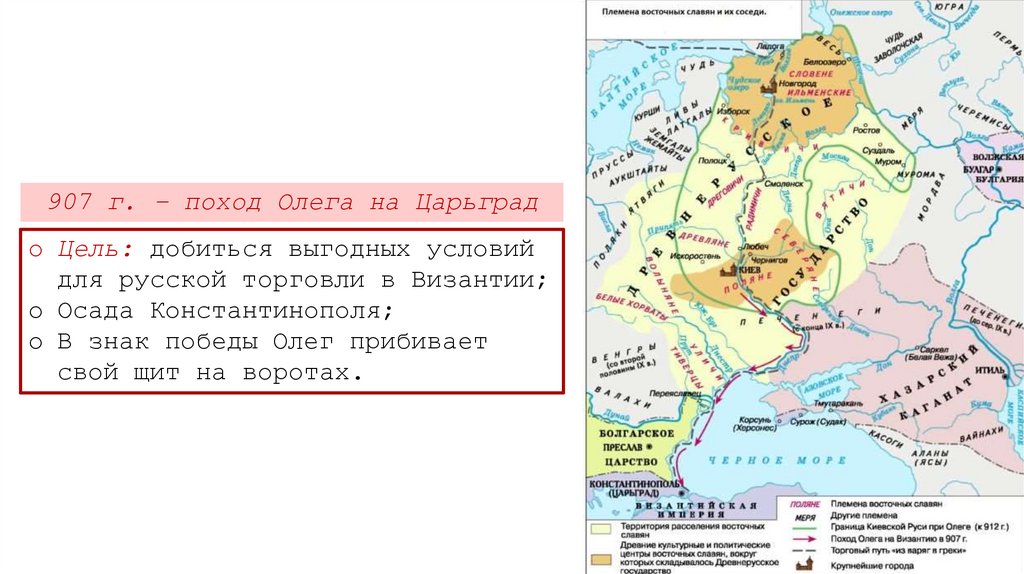 907 г. – поход Олега на Царьградo Цель: добиться выгодных условий