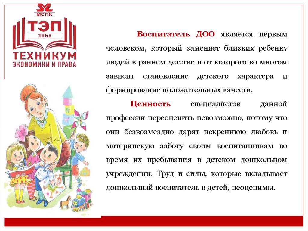 Основная обязанность воспитателя – обеспечениеухода и безопасности доверенных ему детей.