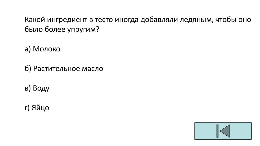 Какой ингредиент в тесто иногда добавляли ледяным, чтобы онобыло более упругим?