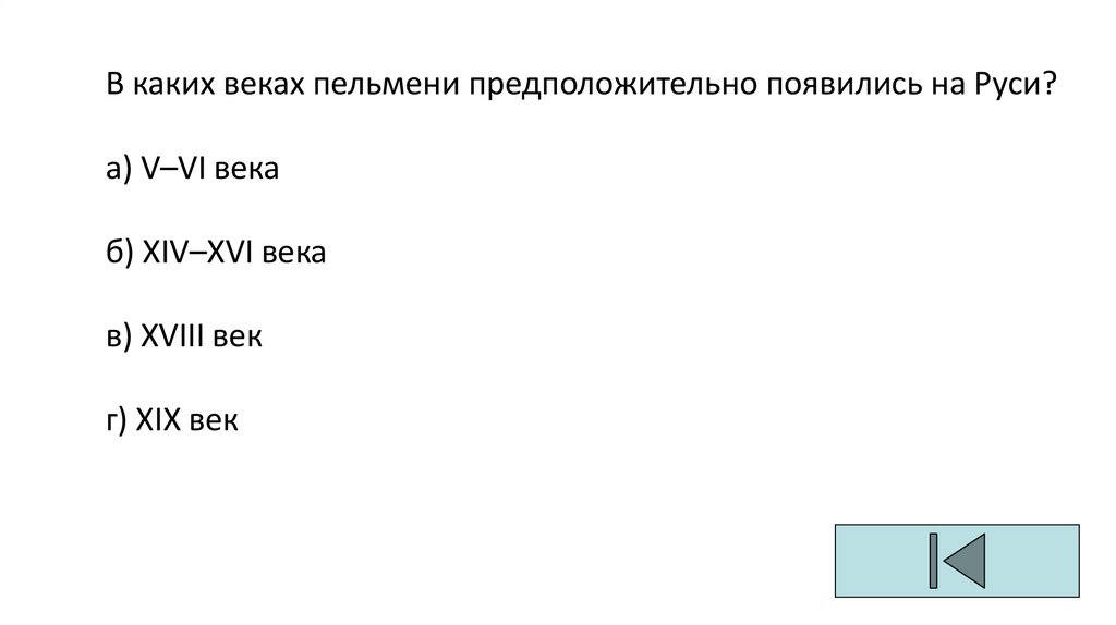В каких веках пельмени предположительно появились на Руси?а) V–VI века