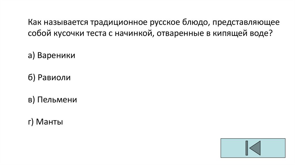 Как называется традиционное русское блюдо, представляющеесобой кусочки теста с начинкой, отваренные в кипящей воде?
