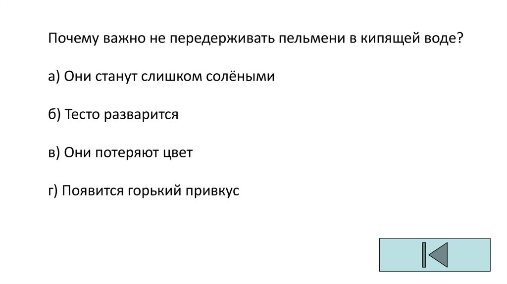 Почему важно не передерживать пельмени в кипящей воде?а) Они станут слишком солёными