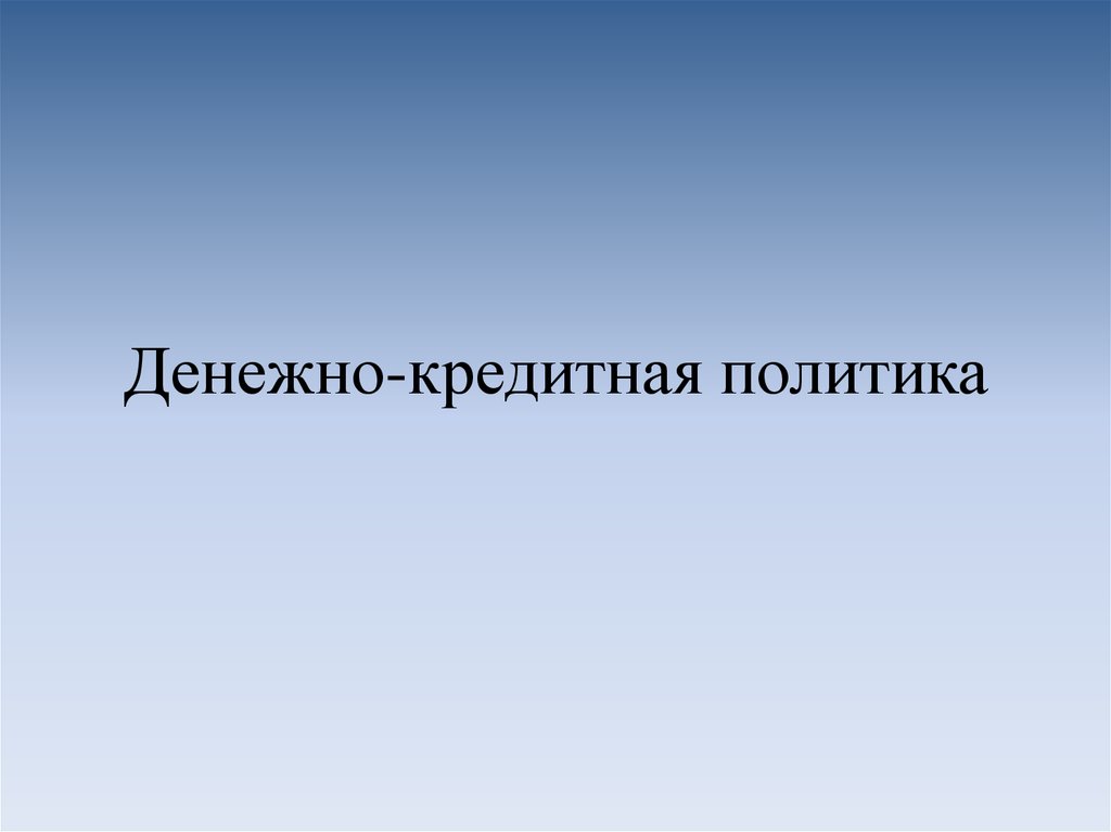 ПОЛИТИКА КРЕДИТНОЙЭКСПАНСИИ (ДЕШЕВЫХ ДЕНЕГ)