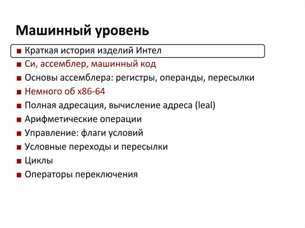 Кратка история изделий Интел. Компьютерные основы программирования. Представление программ, часть 1