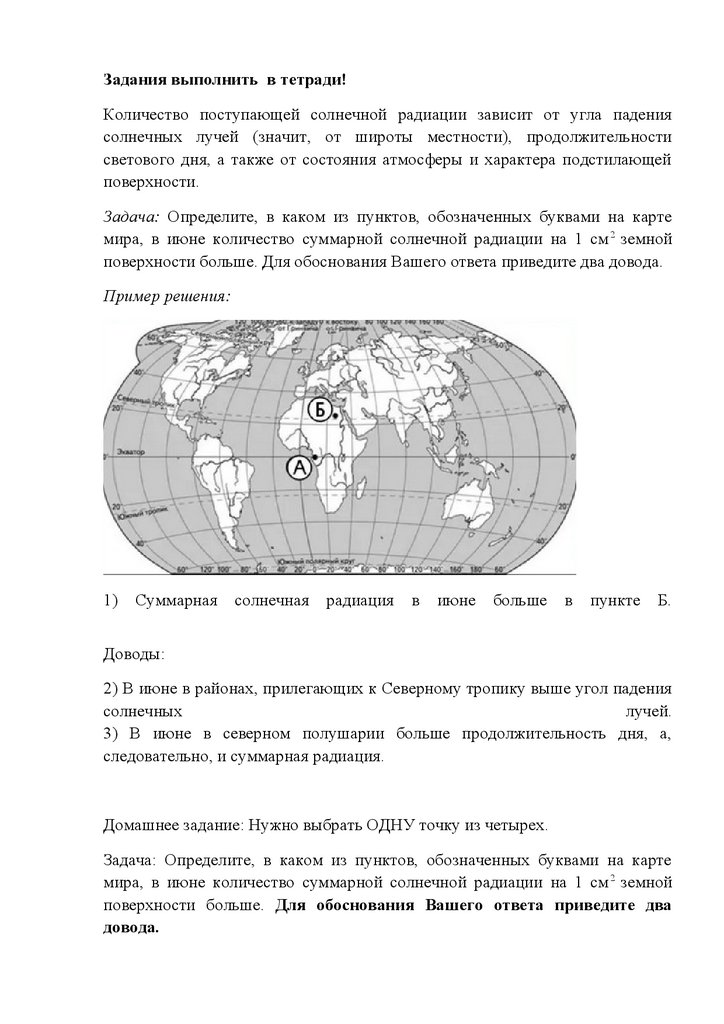 Задания выполнить в тетради!Количество поступающей солнечной радиации зависит от угла падения