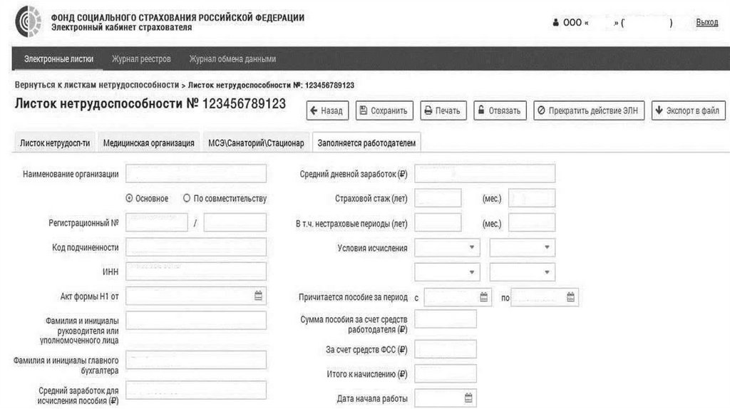 Листок нетрудоспособности, открытый и заполненныймедицинским учреждением в электронном формате