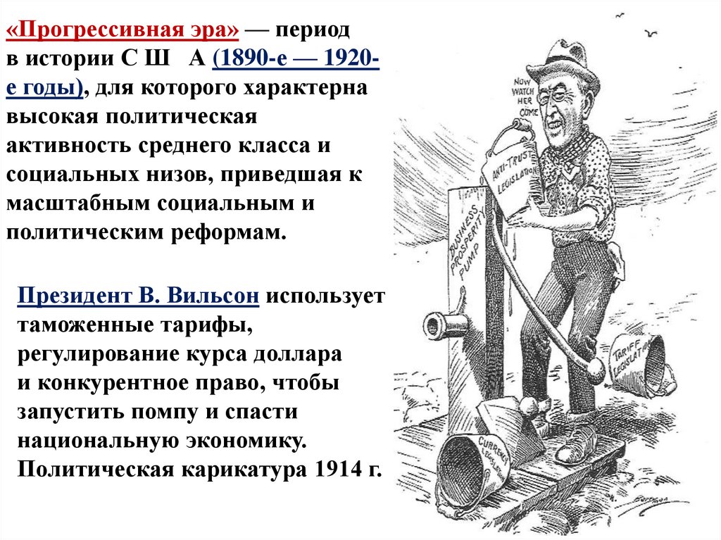 «Прогрессивная эра» — периодв истории С Ш А (1890-е — 1920е годы), для которого характерна
