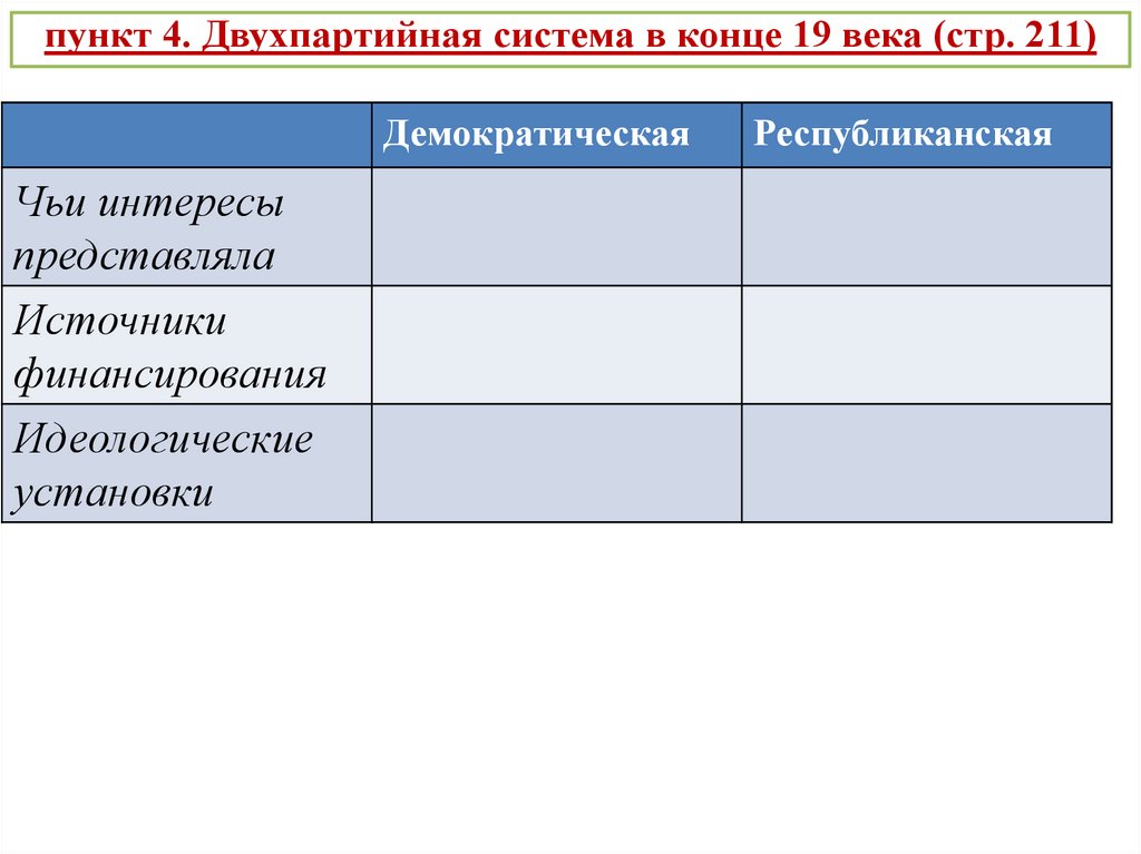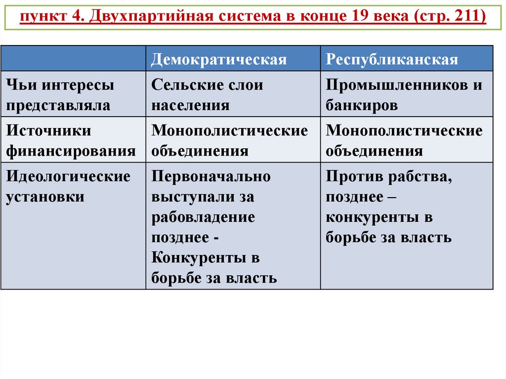 пункт 4. Двухпартийная система в конце 19 века (стр. 211)Демократическая