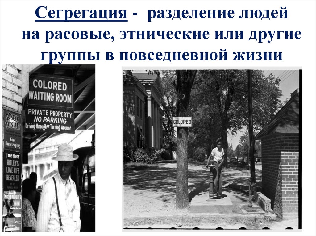 Сегрегация - разделение людейна расовые, этнические или другие