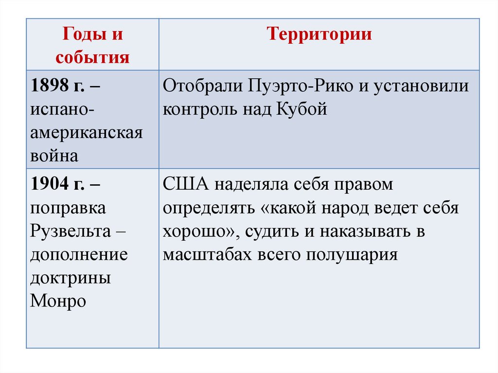 В чем заключалась «Доктрина Монро»?Годы и события