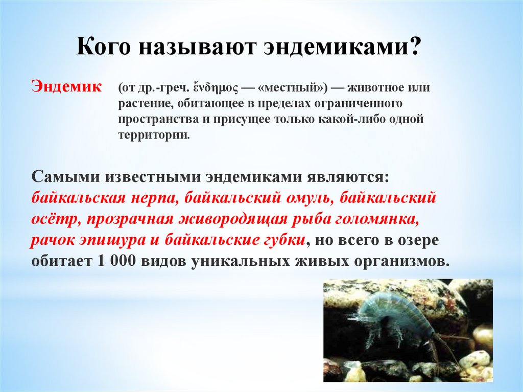 (от др.-греч. ἔνδημος — «местный») — животное или