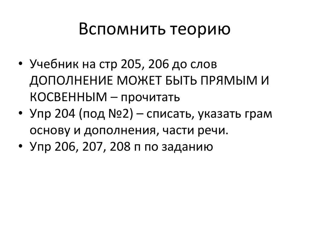 Вспомнить теорию• Учебник на стр 205, 206 до слов