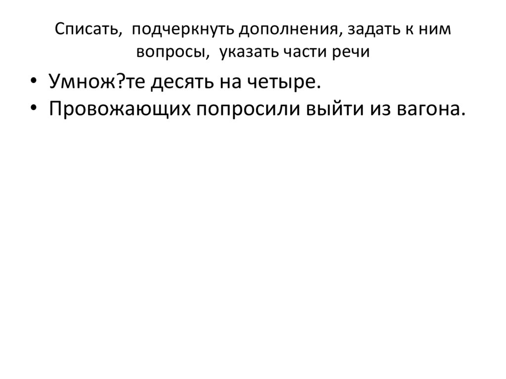 Списать, подчеркнуть дополнения, задать к нимвопросы, указать части речи