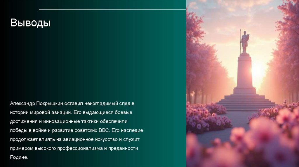 ВыводыАлександр Покрышкин оставил неизгладимый след в