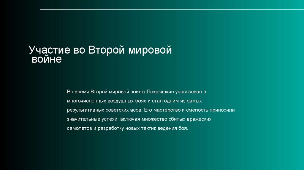 Во время Второй мировой войны Покрышкин участвовал в