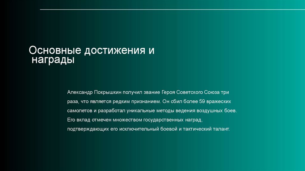 многочисленные боевые достижения. Покрышкин