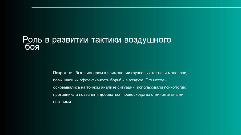 Роль в развитии тактики воздушногобоя