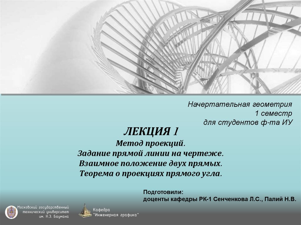 1. ЛЕКЦИЯ 1 Метод проекций. Задание прямой линии на чертеже. Взаимное положение двух прямых. Теорема о проекциях прямого угла.