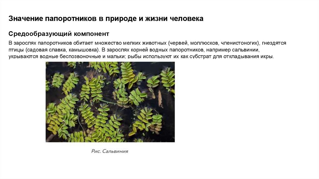 Значение папоротников в природе и жизни человекаСредообразующий компонент