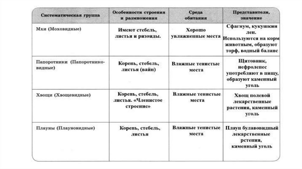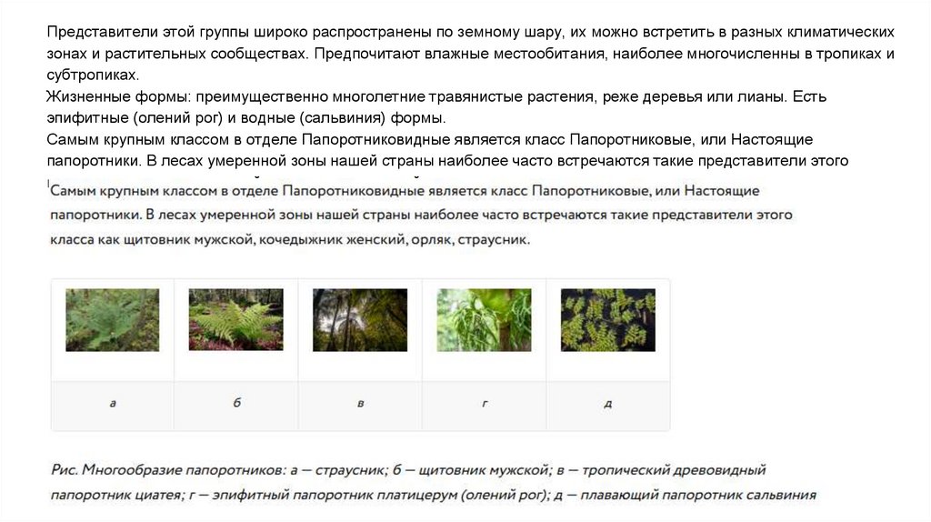 папоротники. В лесах умеренной зоны нашей страны наиболее часто встречаются такие представители этого