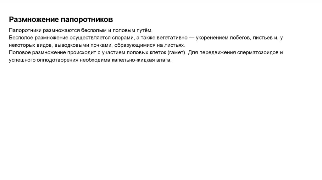 Размножение папоротниковПапоротники размножаются бесполым и половым путём.