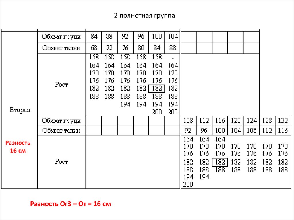 2 полнотная группаРазность