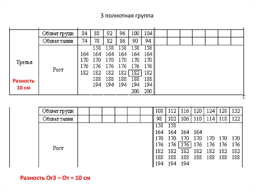 полнотная группаРазность Об - Ог3 = 10 см