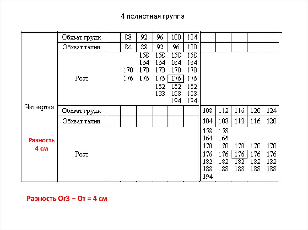 4 полнотная группаРазность