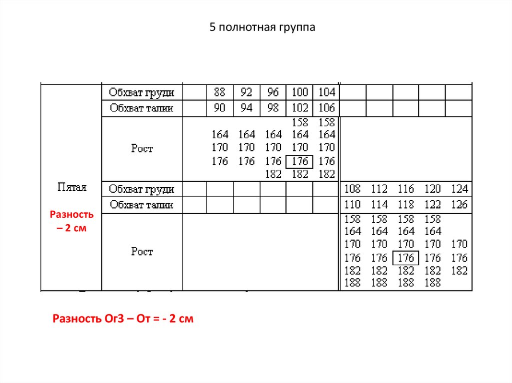 5 полнотная группаРазность