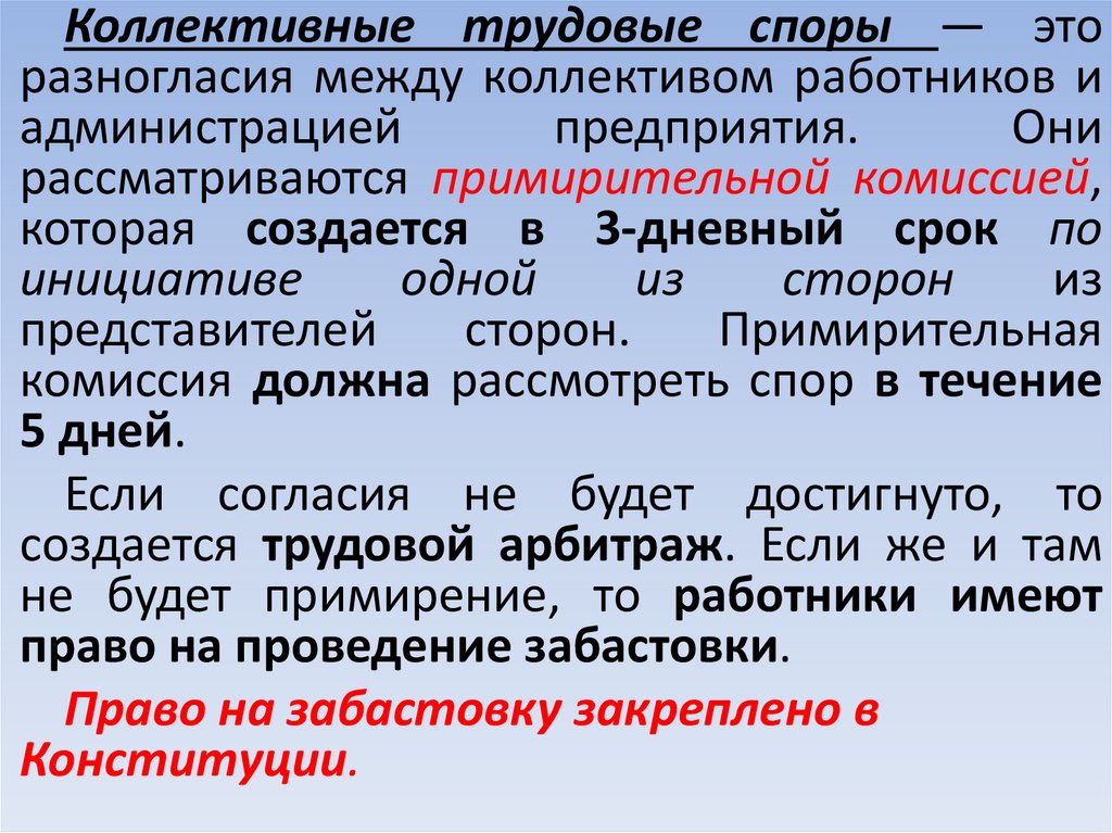 Коллективные трудовые споры — эторазногласия между коллективом работников и