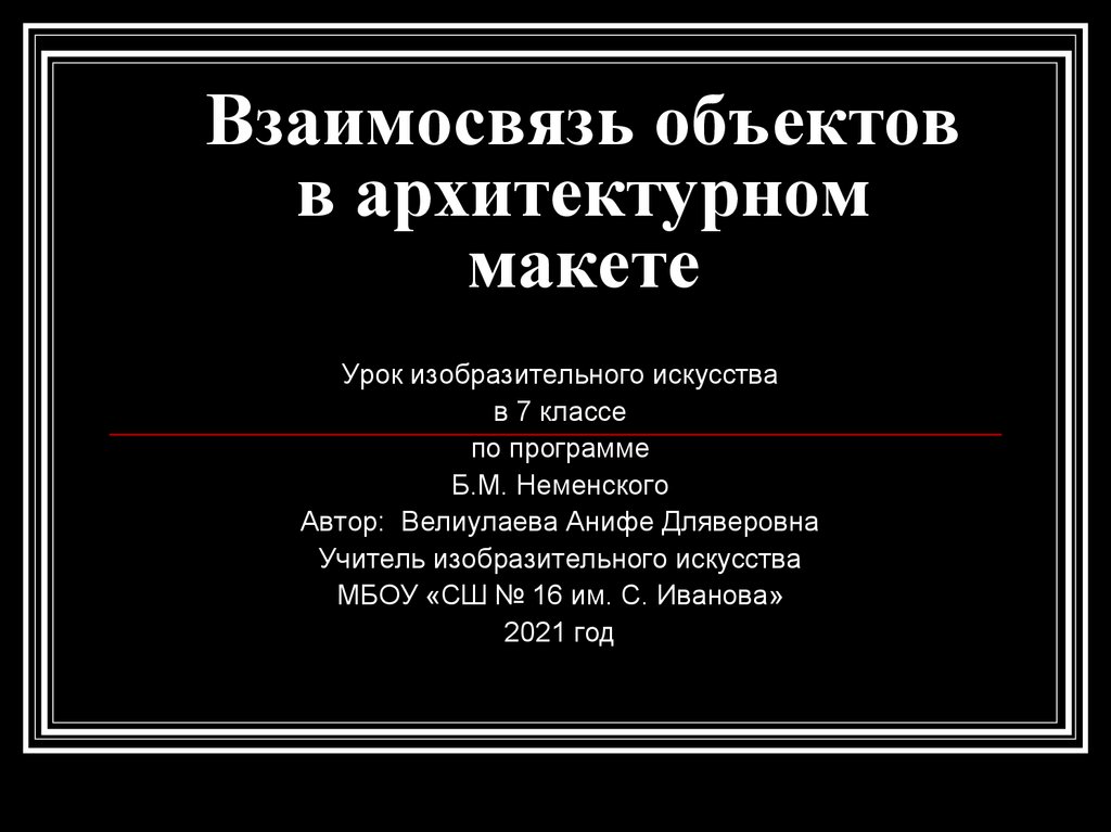 АРХИТЕКТУРНОМ МАКЕТЕ,